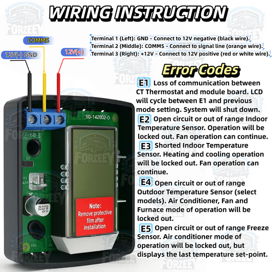 RV Thermostat Compatible with Dometic 3316250.712, Single Zone Control for Cool/Heat, 12V DC, Capacitive Touch, Blue Backlight