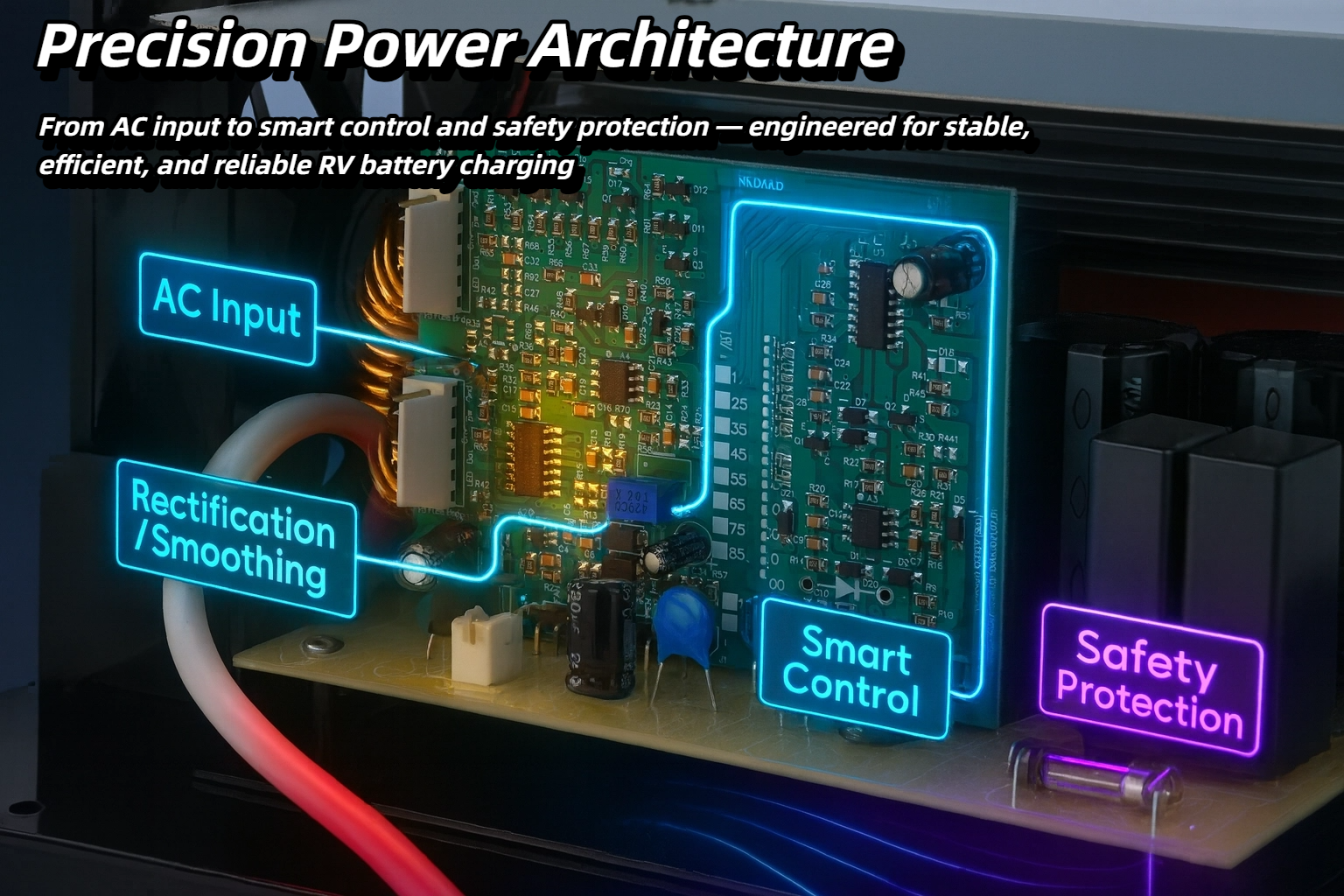 - 【THREE-STAGE CHARGING】Bulk (14.4V), Normal (13.6V), and Float (13.2V) charging keep batteries safe, fully charged, and long-lasting.